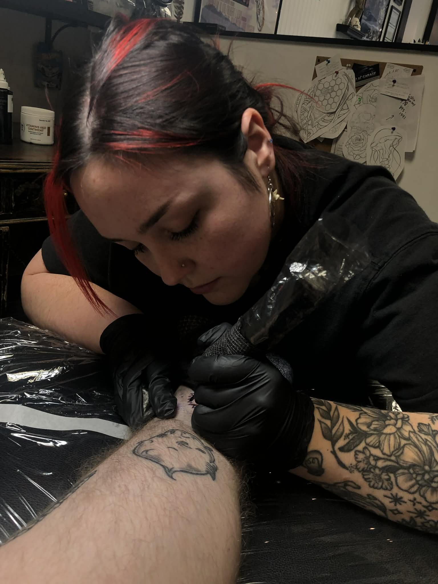 Iām Mags! I am a first-year tattoo artist and avid painter. A creative person since childhood, I fell in love with tattooing while studying art history in college and have developed a passion for American Traditional and Ornamental styles. My art is heavily influenced by tattoo history, endangered crafts, and mid-century design. I believe every tattoo brings one closer to their true self, and making that happen for the people in my chair is as rewarding as having the privilege to work in a creative career. Outside of tattooing I enjoy painting custom pet portraits, baking sweet treats, kayaking, and lounging with my cats!